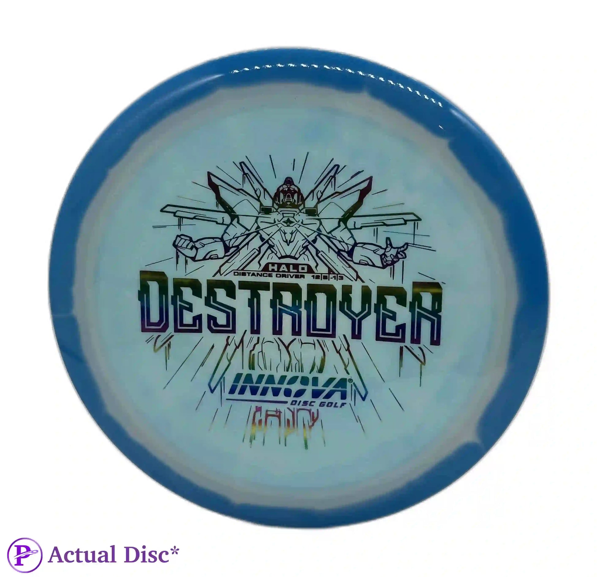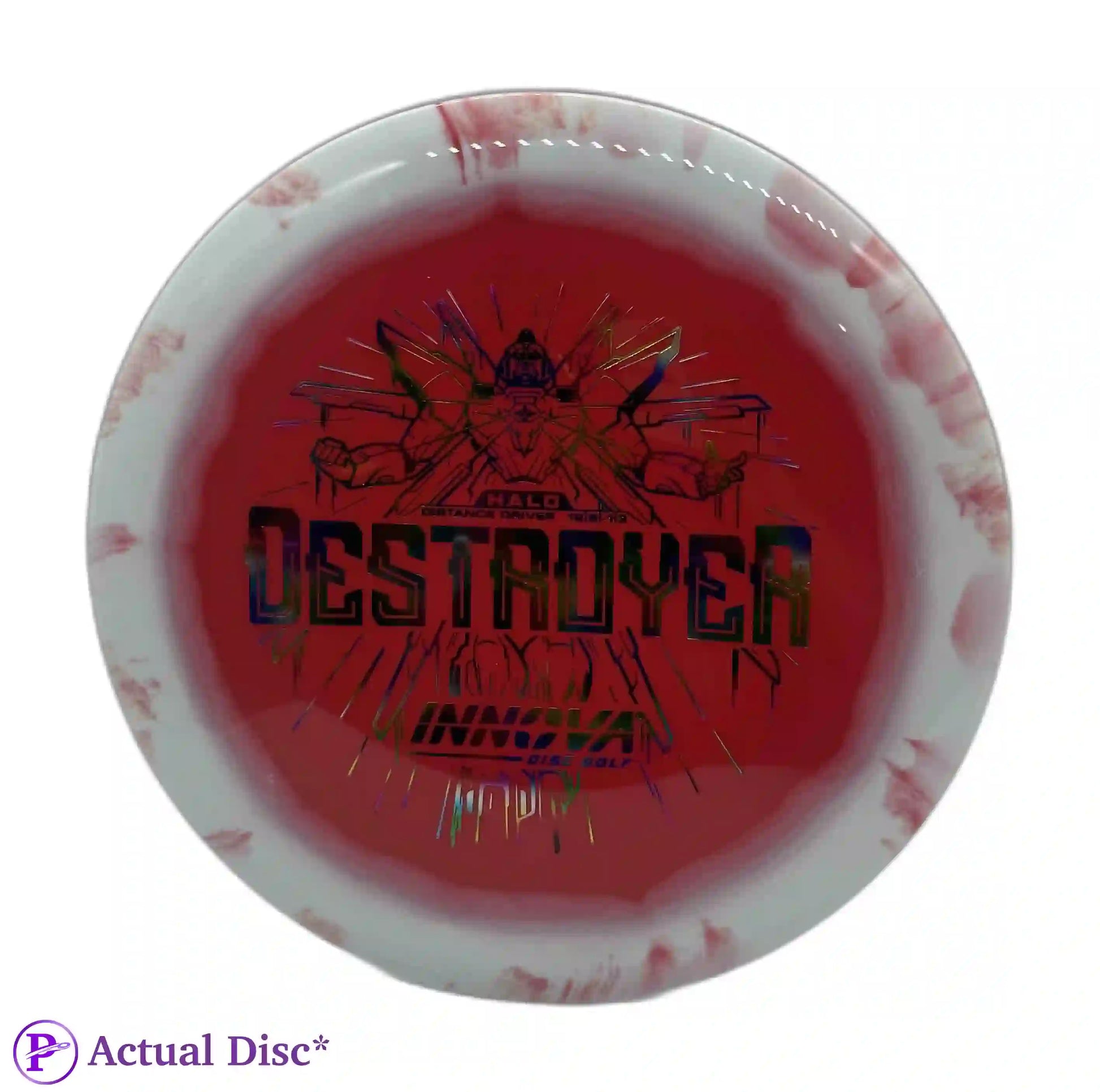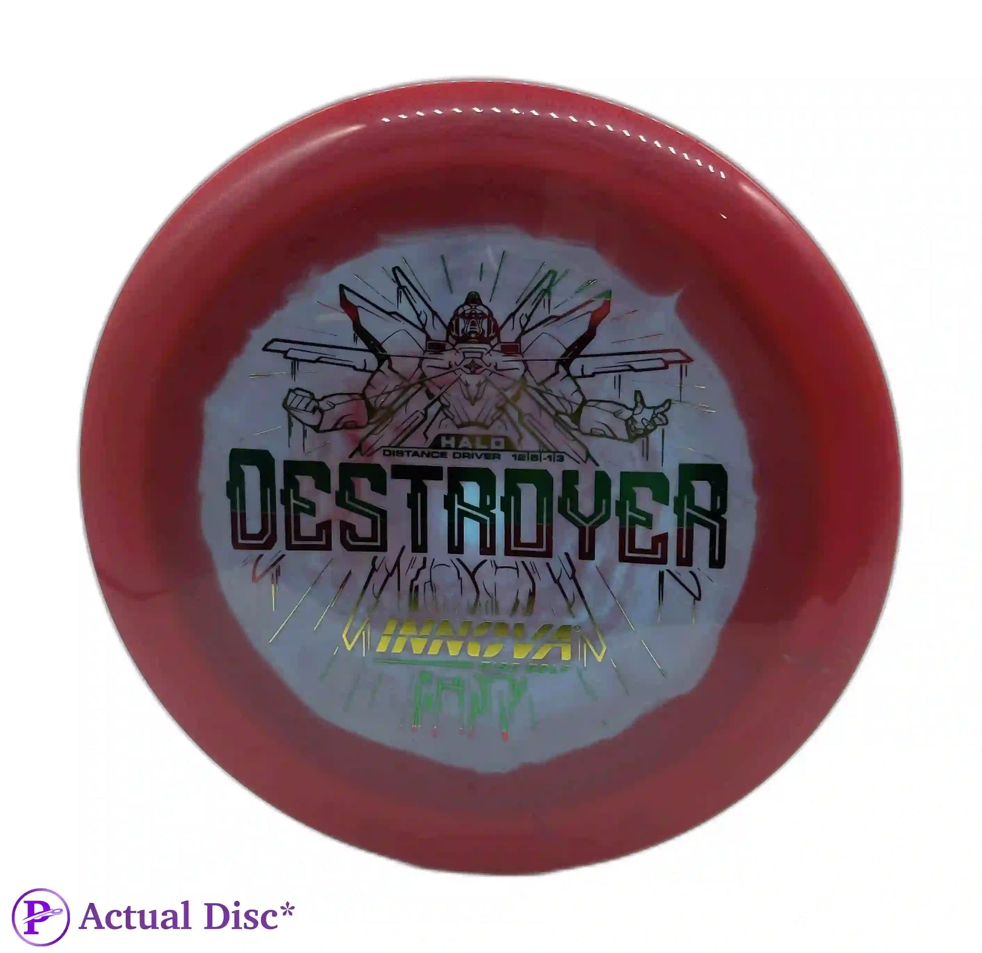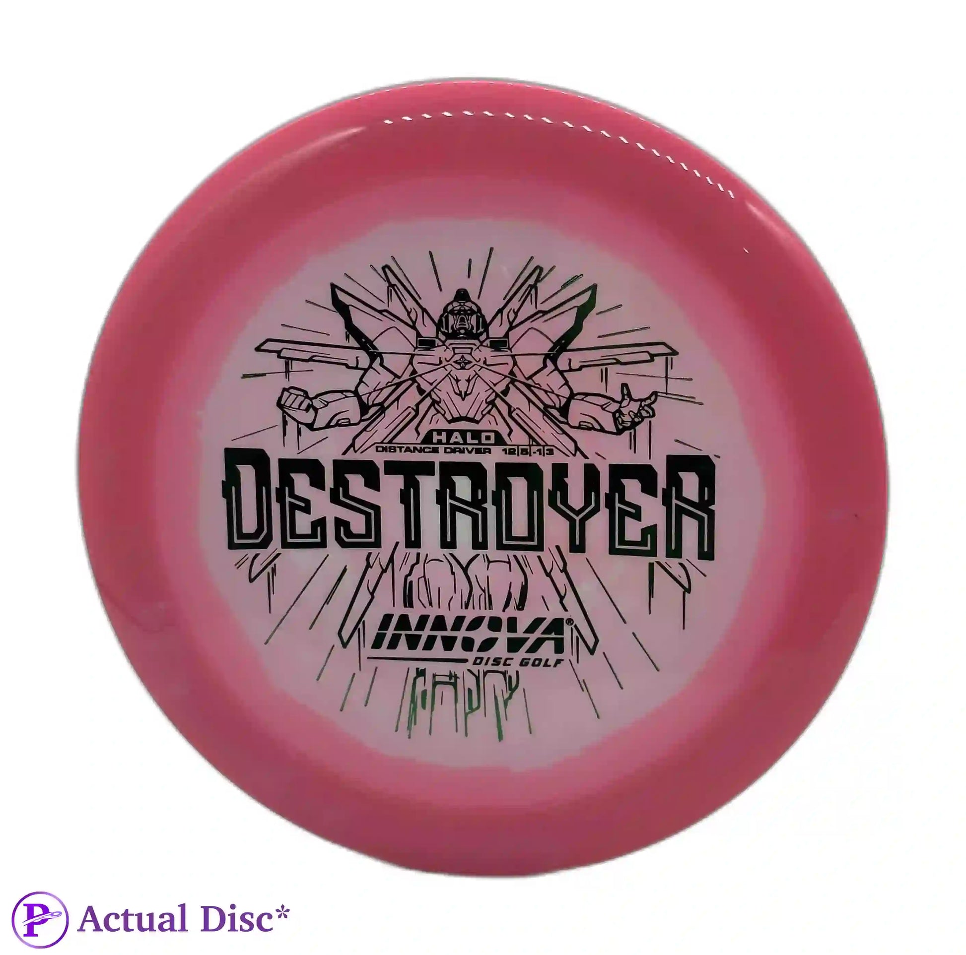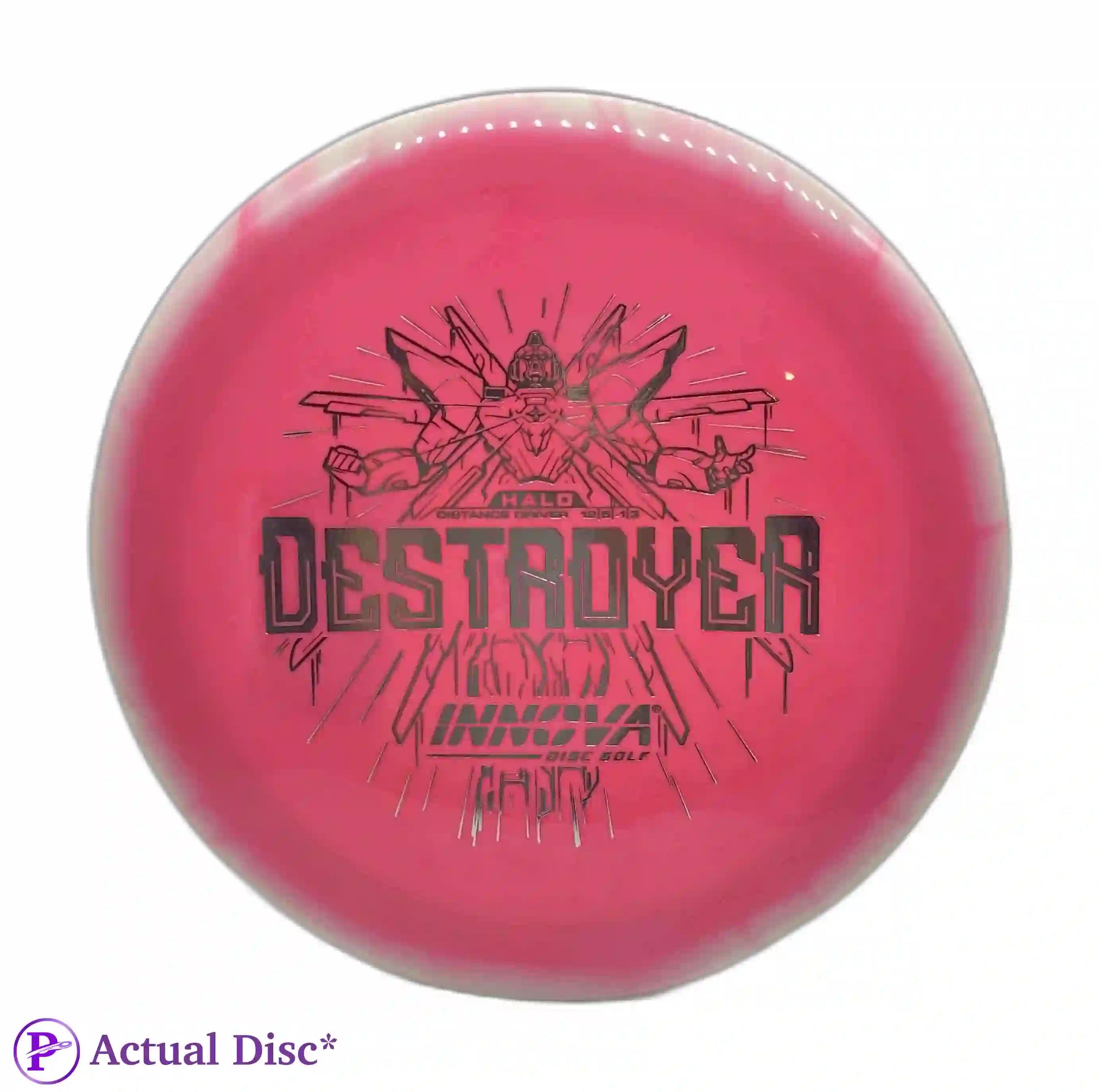Love the INNVision graphics, hate that this disc gets recommended for any beginning player. I use it pretty much exclusively for flex forehand distance drives, and it performs perfectly for that. 12 speeds in general, but especially something as overstable as a Destroyer, should be avoided by most amateurs until you can reliably throw 350+. If not, disc down to an 11 or 10 speed with similar flight numbers and you'll get much better results. (Nivå på anmelder: Middels)